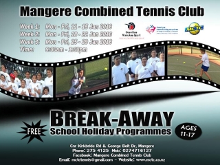 January School Holiday Programme Post published:December 24, 2015 School Holiday Programme at Mangere Combined Tennis Club